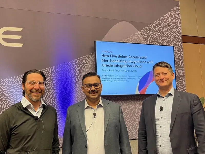 Siddhartha Saran from Five Below (middle), Chad Timm from Oracle (left), and our own CEO, Gabor Tozser (right) sat down for an open panel discussion on Five Below’s transition from RICS to Oracle Integration Cloud